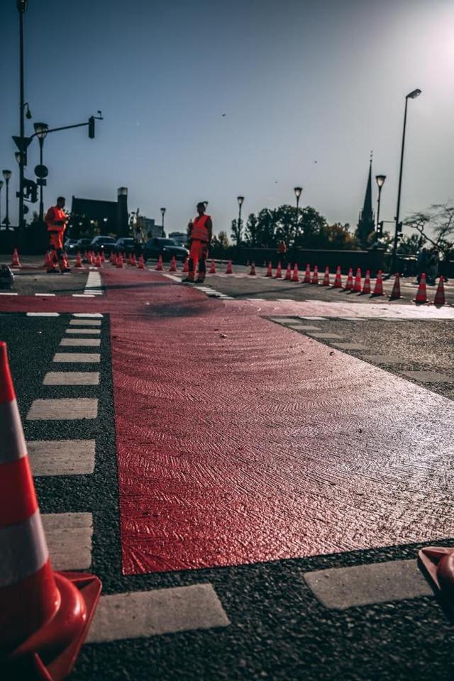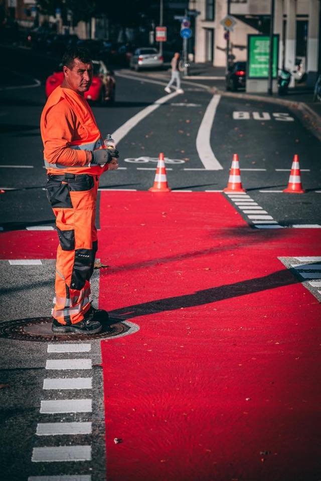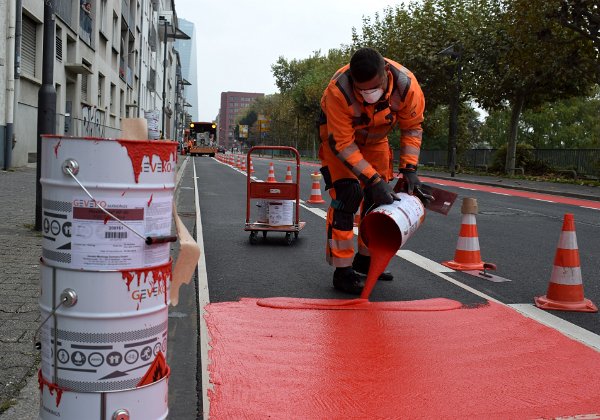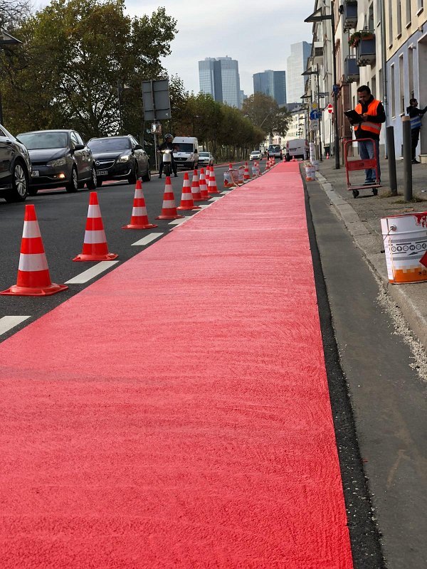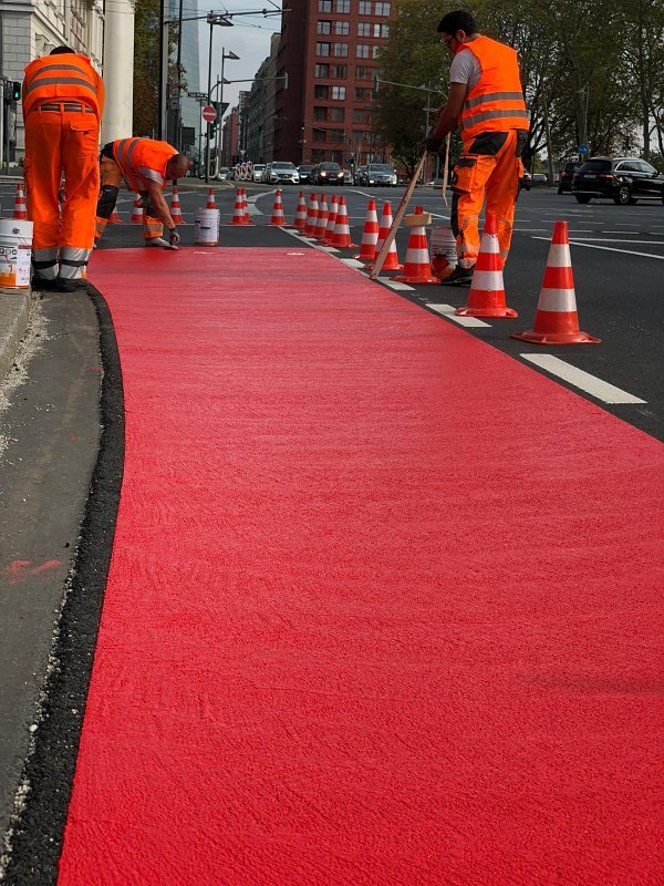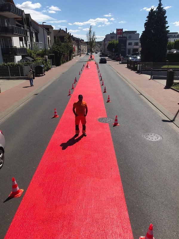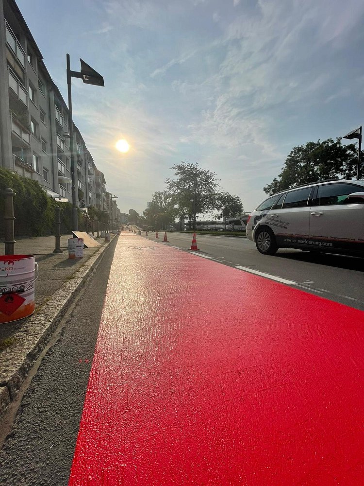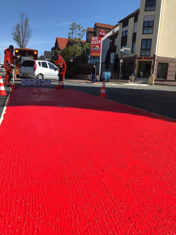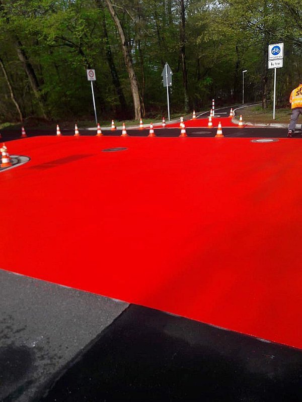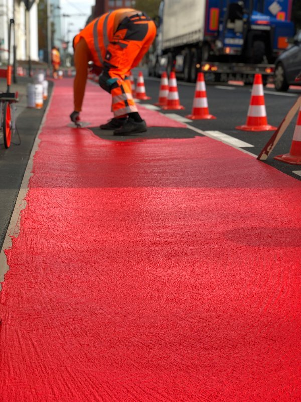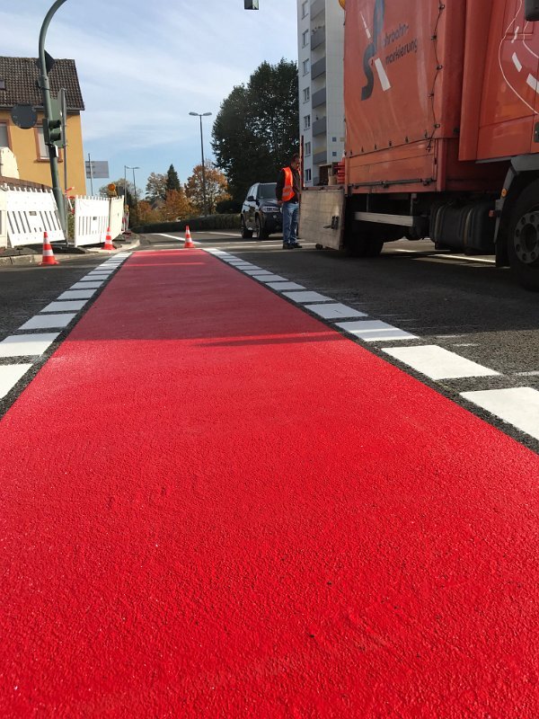 Radwegmarkierungen in Kaltplastik rot
