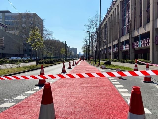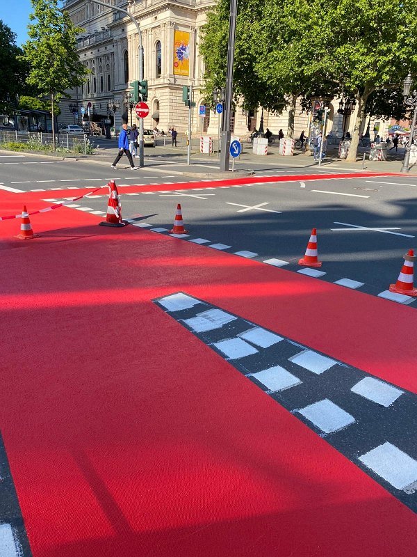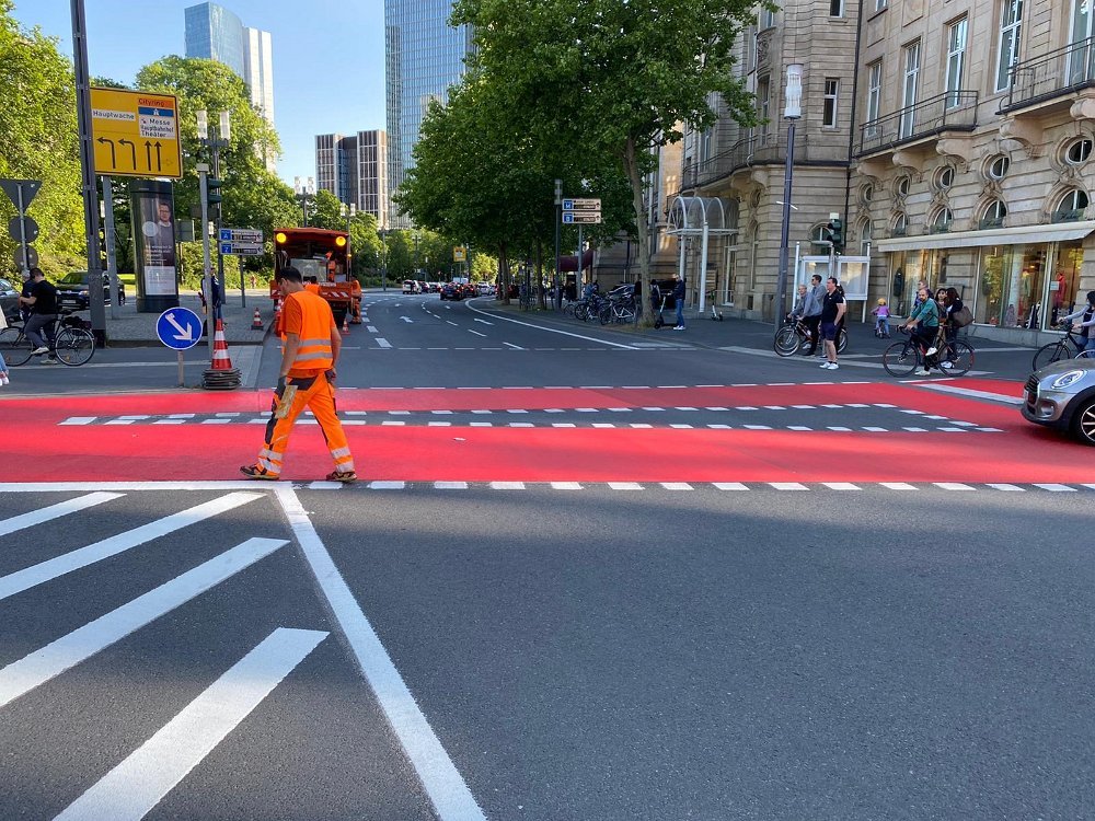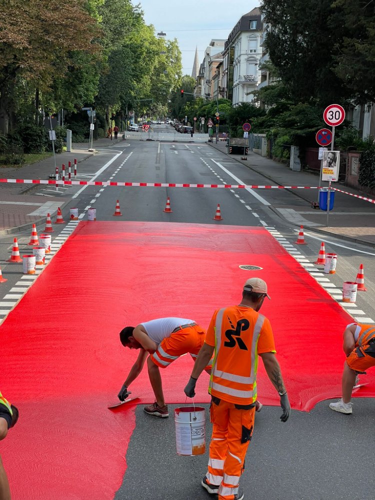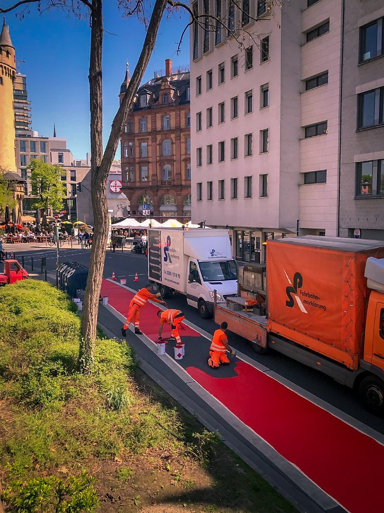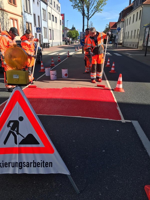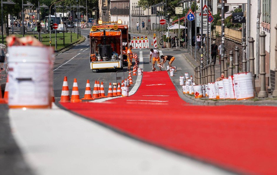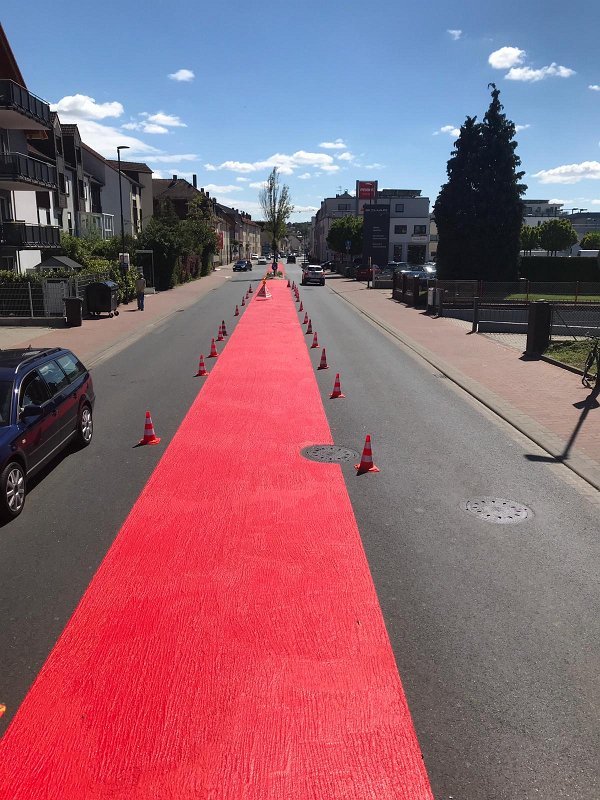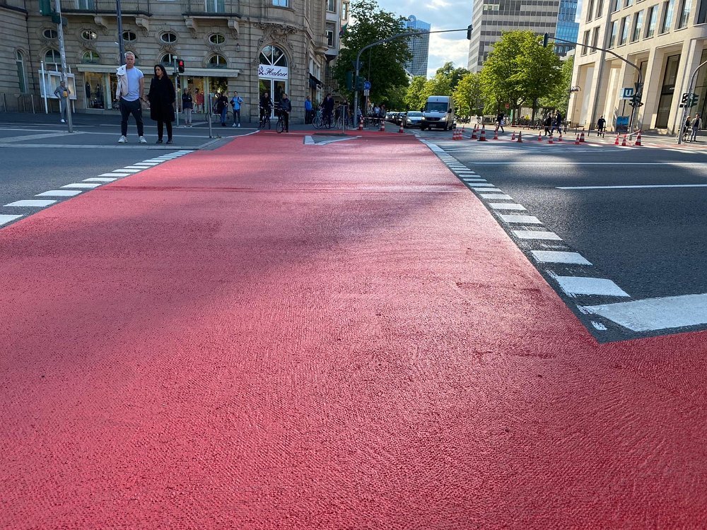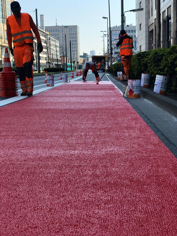 Radwegmarkierungen in Kaltplastik rot