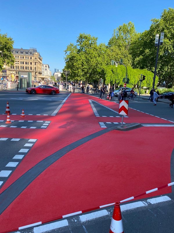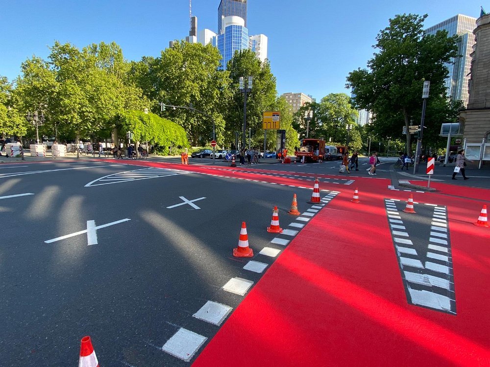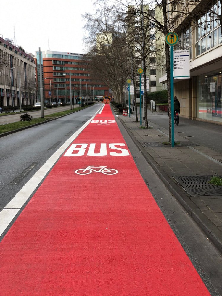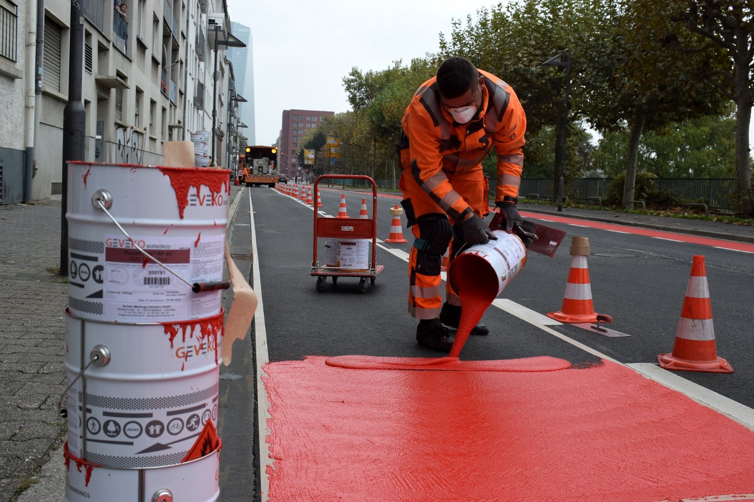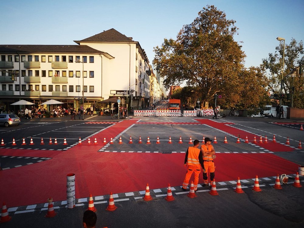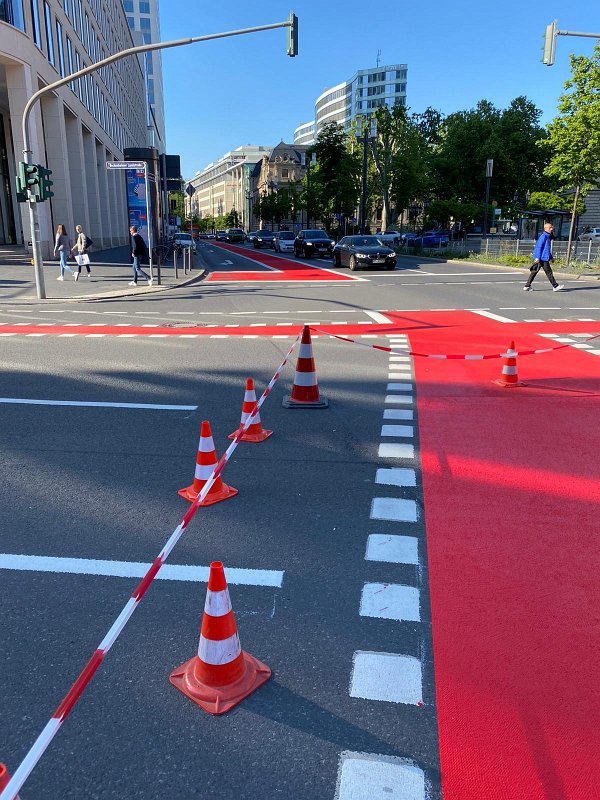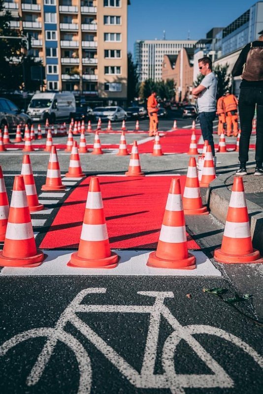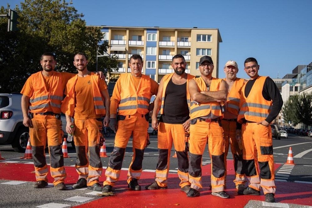 Radwegmarkierungen in Kaltplastik rot