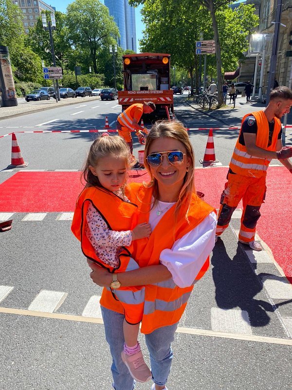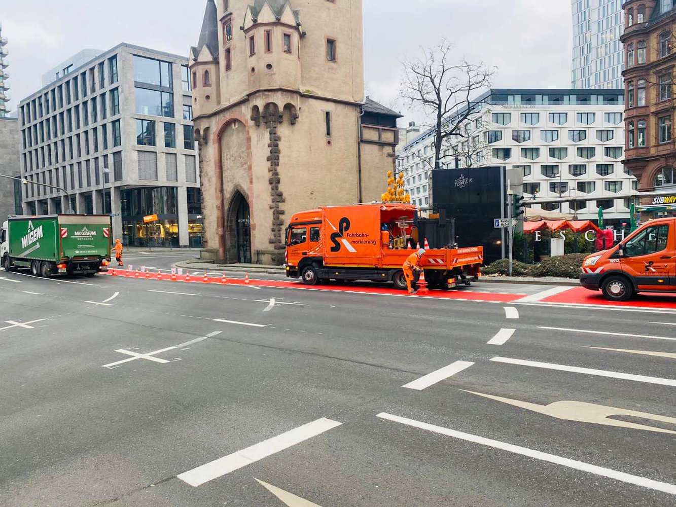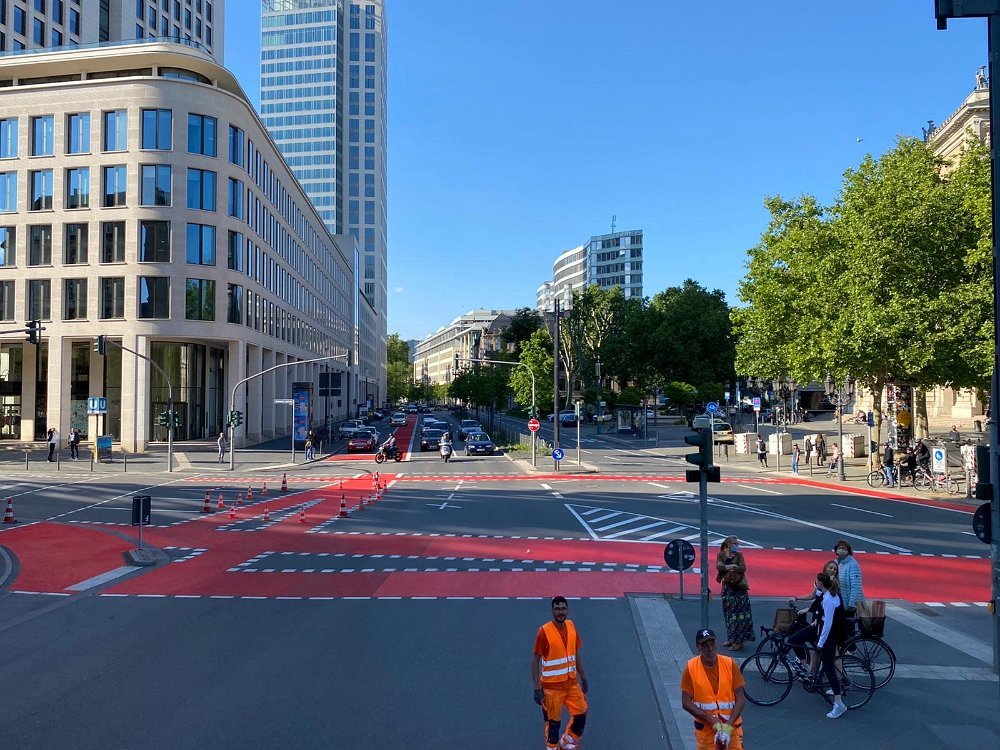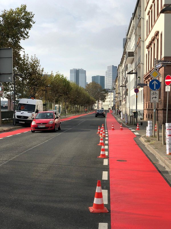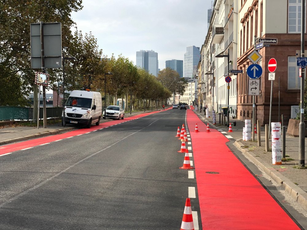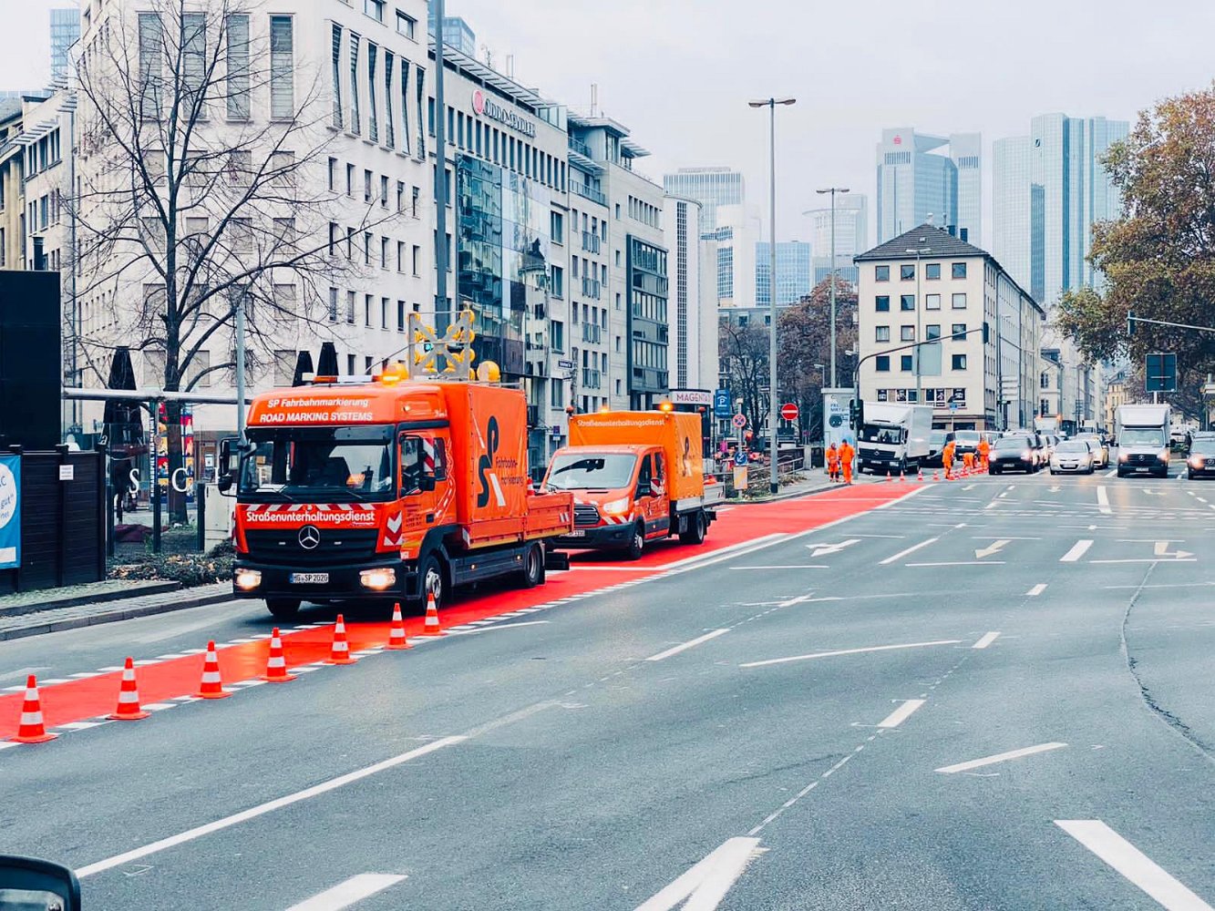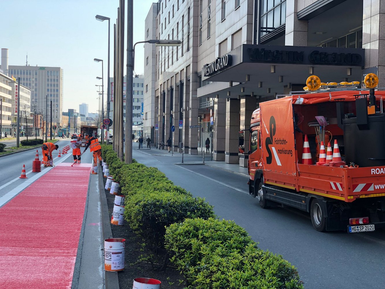 Radwegmarkierungen in Kaltplastik rot